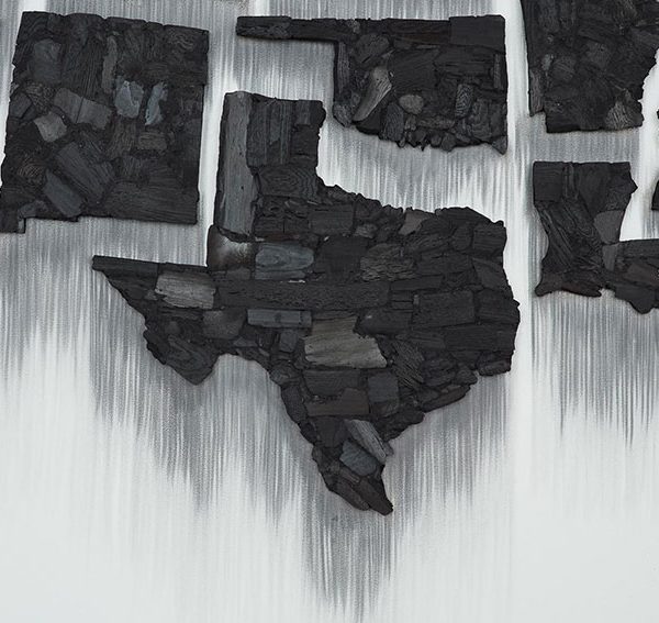 The exhibition considers what a landscape is and how we see our country through that lens. Nari Ward represents American life through a salvaged liquor sign. Catherine Opie photographs suburban mini-malls. Teresita Fernández speaks to what is unsaid through a charcoal map of the United States. Tim Rollins & K.O.S. painted over literature and music.