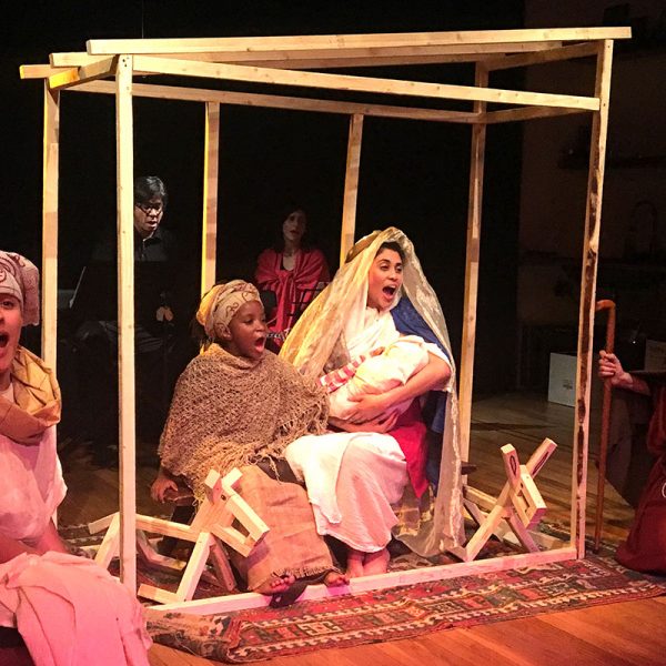 The show is a nativity presentation with eight actors and a three-piece band singing Christmas carols. It’s a black box theatre type of presentation